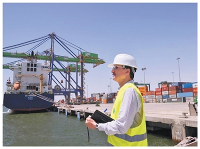 友誼港港務(wù)局局長技術(shù)顧問費(fèi)薩爾在港口巡視。